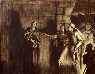 Он отошел к другому костру. Кутаясь в тонкий хитон, он краем глаза наблюдал, как продолжали издеваться над Иисусом стражники. «Меня гнали и вас будут», - всплыли из памяти слова Учителя. Дрожь пробежала между лопаток. Петр передернул плечами и ниже опустил голову. Прогоревшее полено рухнуло в середину костра, поднимая столб искр. Он невольно отшатнулся и увидел ту же служанку. Она тыкала в него пальцем и говорила воинам: